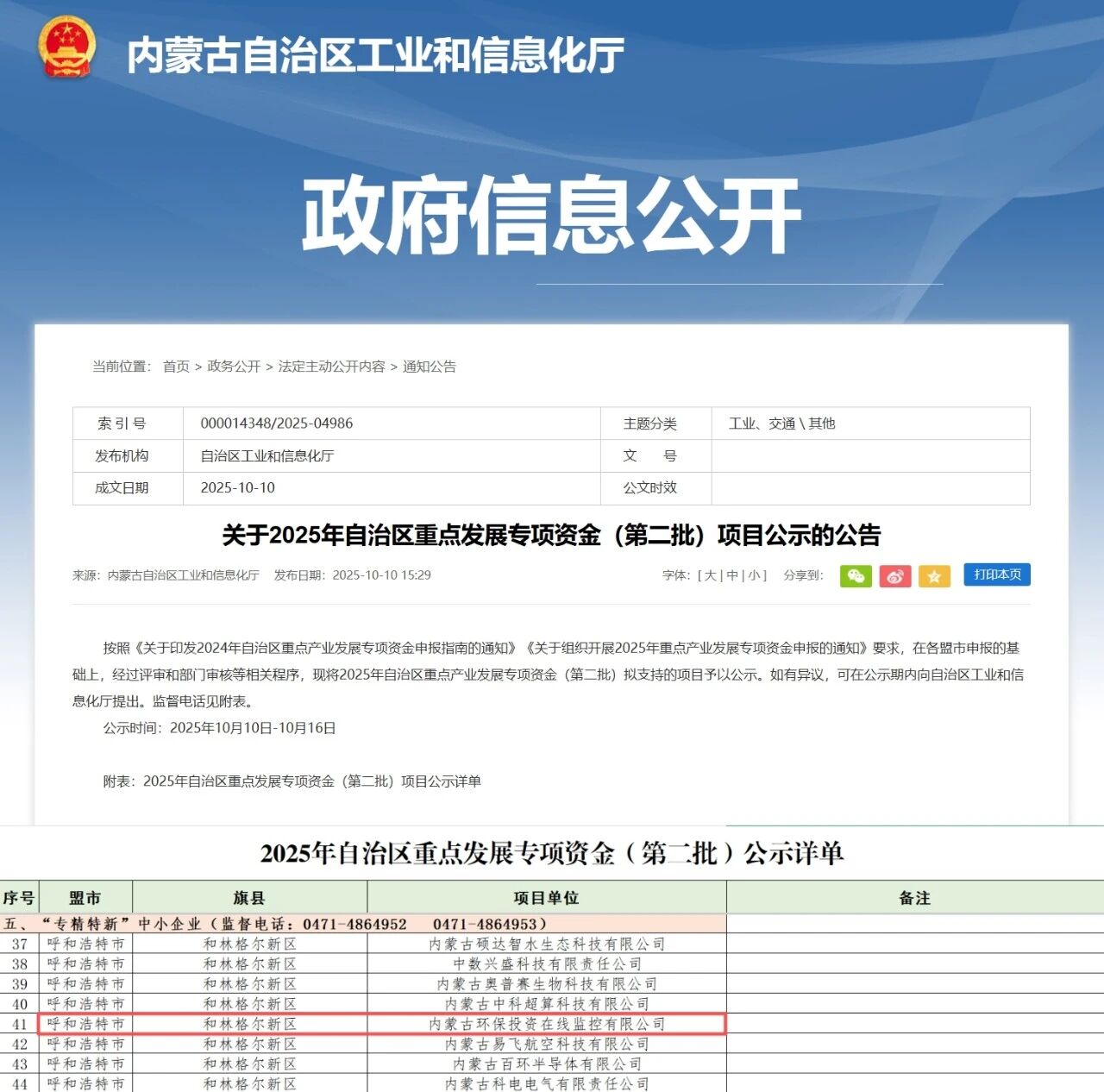 近日,内蒙古自治区工业和信息化厅对2025年自治区重点发展专项资金项目“专精特新”中小企业名单进行了公示,内蒙古环保投资在线监控有限公司(以下简称“在线监控公司”)凭借在专业领域的突出表现和创新能力成功入选。